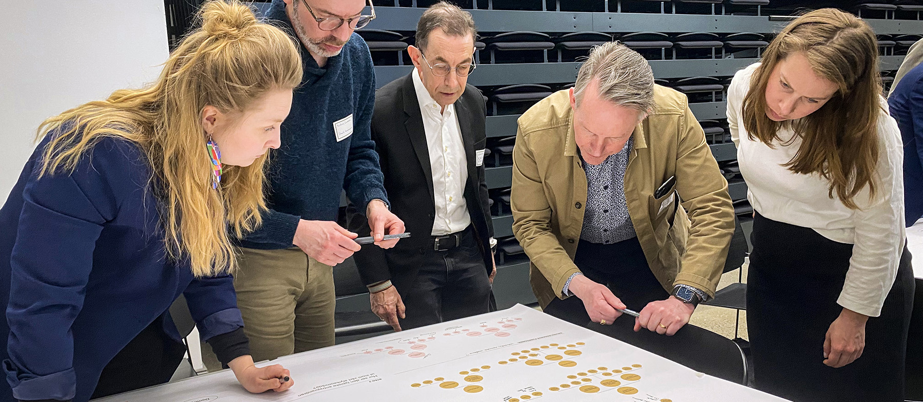 På stora vaxdukar med de nio styrkeområdena mappade vi tillsammans alla relevanta aktörer, resurser och behov. Denna process inspirerade senare avknoppningsprojektet iiOV, där djupintervjuer genomfördes per styrkeområde.